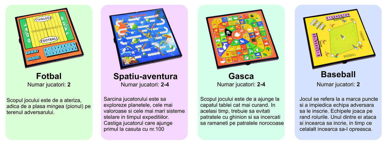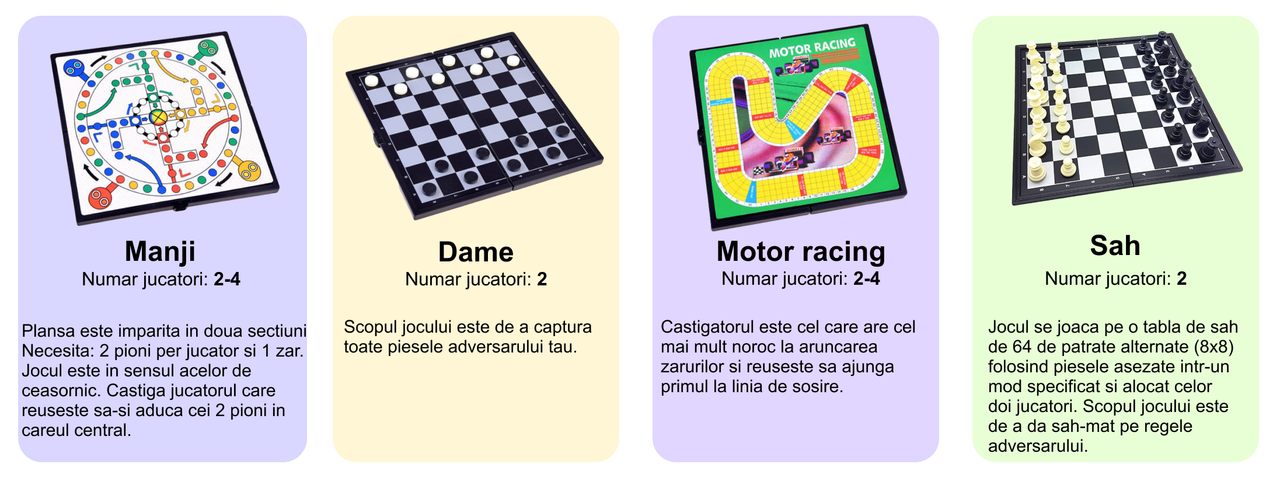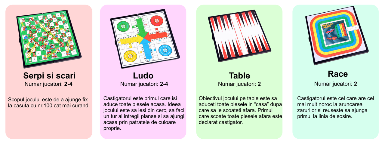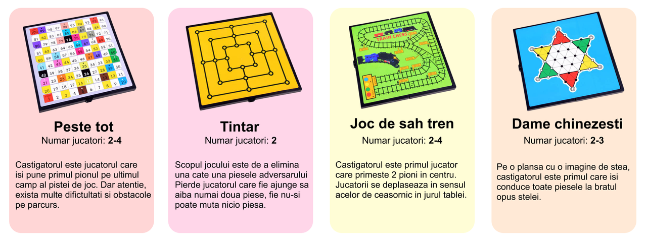 Descopera o modalitate distractiva si inteligenta de a petrece timp de calitate alaturi de cei dragi! Jocurile educative nu sunt doar o sursa de amuzament, ci si un instrument valoros pentru dezvoltarea abilitatilor interpersonale si a gandirii strategice la copii.