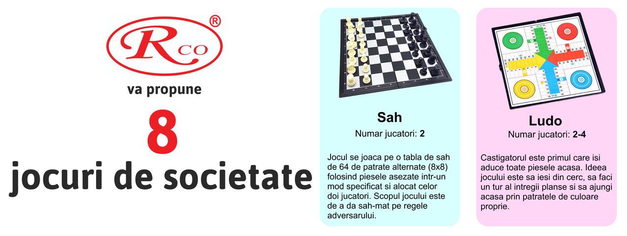 Set Jocuri de Societate Clasice 8 in 1, educative pentru copii, 2-4 jucatori, 8+ani