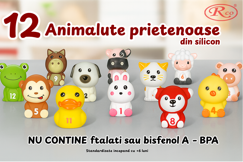 Material: plastic ABS si silicon, conform standard EN 71.-1; EN 71-2; EN71-3 (nu contin ftalati sau bisfenol A – BPA);